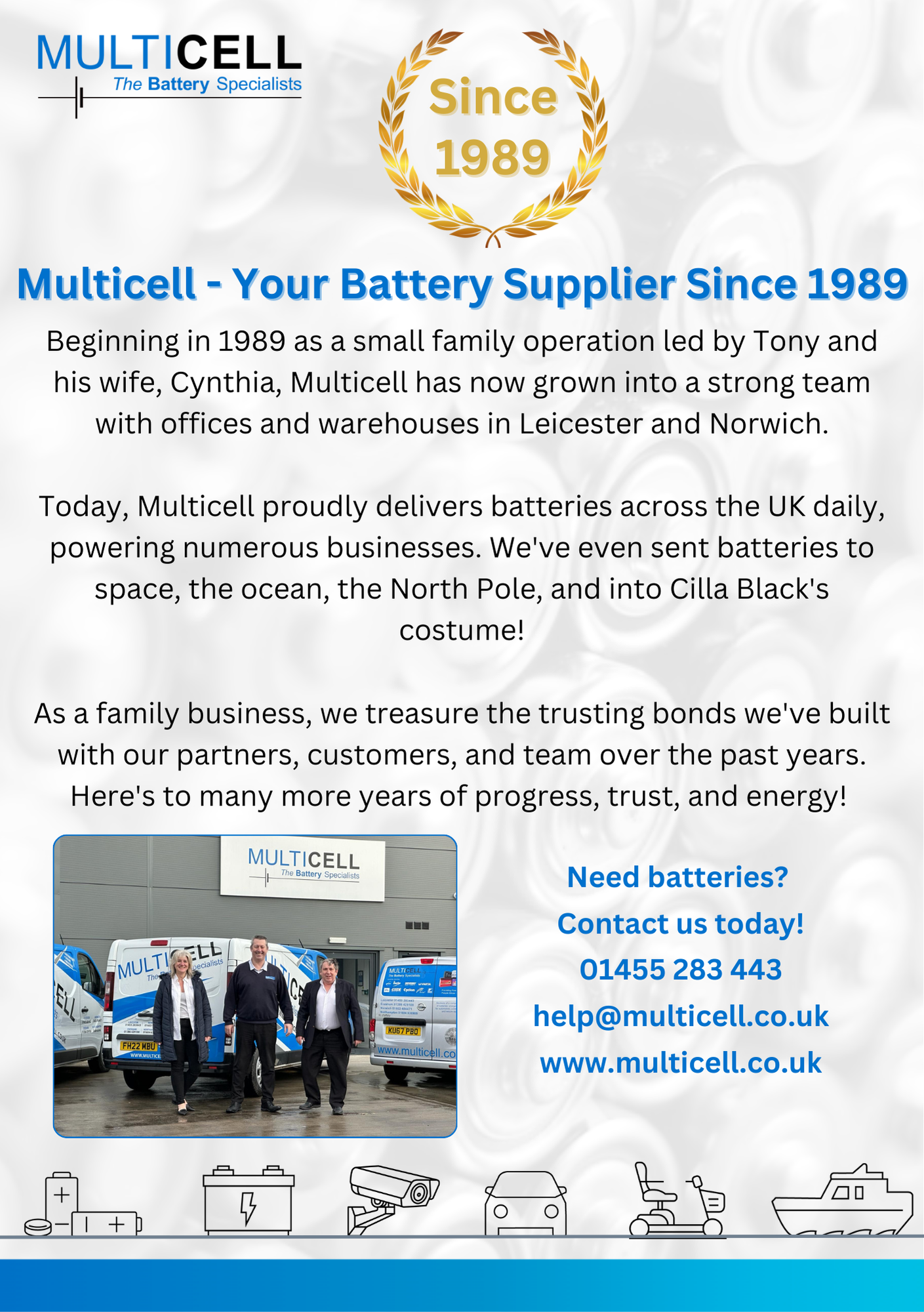 We are a family-run battery distributor and manufacturer in the UK since 1989.